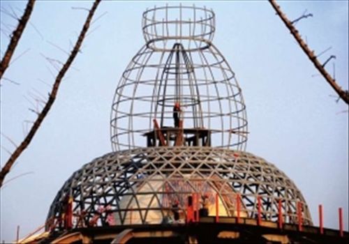 可不要認為用竹藤做建筑材料是很簡單的事。在以“零化學物質”著稱的印度館內使用了世界上最大的竹制穹頂:一根跨度逾三十四米的頂梁,要用竹材加工出弧度來,其難度可想而知。竹子最終能夠“挑大梁”,實際上是利用現代工藝和科技對傳統材料進行再加工的結果。