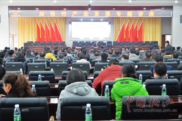 12月9日,黨政大樓附屬樓三樓會(huì)議室里,一場高規(guī)格的加快竹產(chǎn)業(yè)發(fā)展專題講座在這里舉行??h委副書記何軍田主持,縣領(lǐng)導(dǎo)唐學(xué)文、李質(zhì)彬、馬文才、陳震宇、胡國清、肖立新、張亮榮、劉武出席。副處級(jí)以上干部,縣直單位、鄉(xiāng)鎮(zhèn)負(fù)責(zé)人,林業(yè)系統(tǒng)工作者共400余人濟(jì)濟(jì)一堂,認(rèn)真聆聽了中國工程院院士、中國竹子加工利用首席科學(xué)家、南京林業(yè)大學(xué)教授張齊生和國家林業(yè)局竹子研發(fā)中心科研處處長、竹筍專家、高級(jí)工程師吳良如精彩而豐富的竹產(chǎn)業(yè)講課。